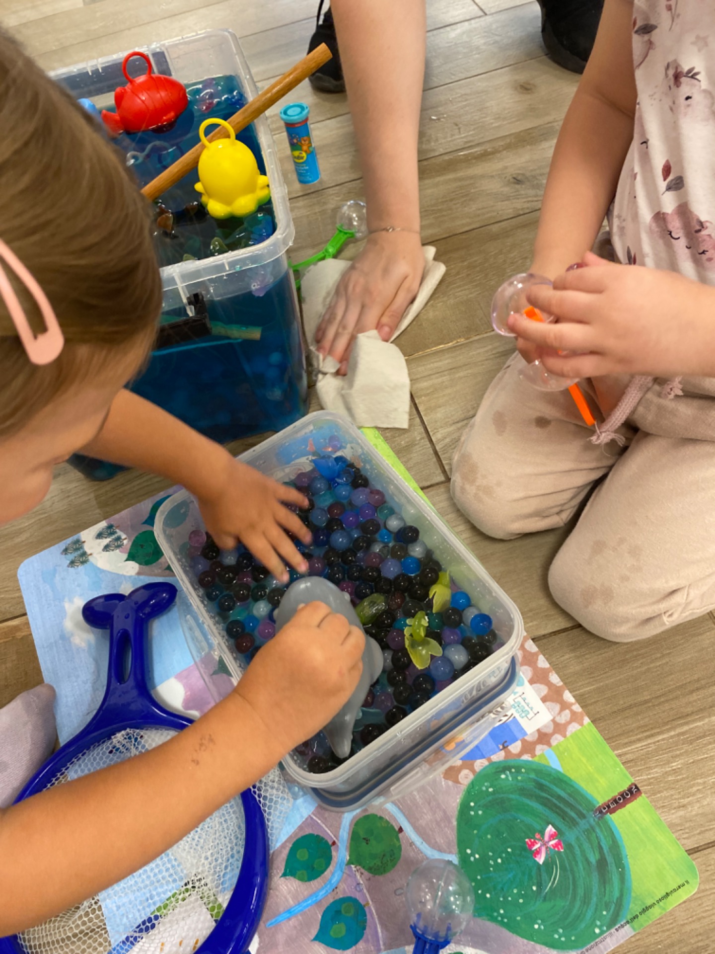 Na vodním stanovišti si děti hrály s vodními perlami a zkoušely chytat rybky.