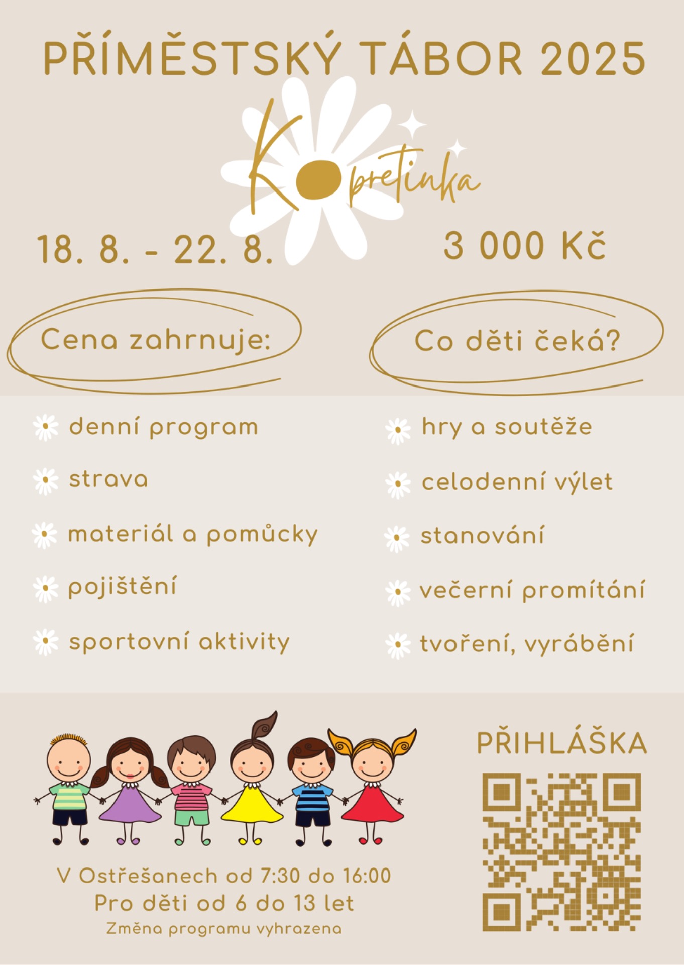 Chystáme pro Vaše děti příměstský tábor plný zábavy, sportu, her a nových kamarádů.